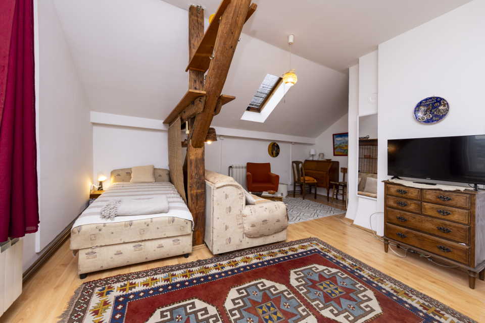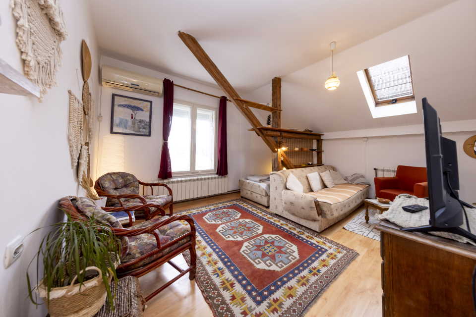 Miran stan u boho stilu, 36m2 na ulici Bulevar kralja Aleksandra, pored Đeram pijace. Peti sprat (ima lift), prozori ne gledaju na ulicu vec na dvoriste pa nema buke, potpuno opremljen za zivot. Soba sa dnevnim i spavacim delom, hodnik i kujna i kupatilo.