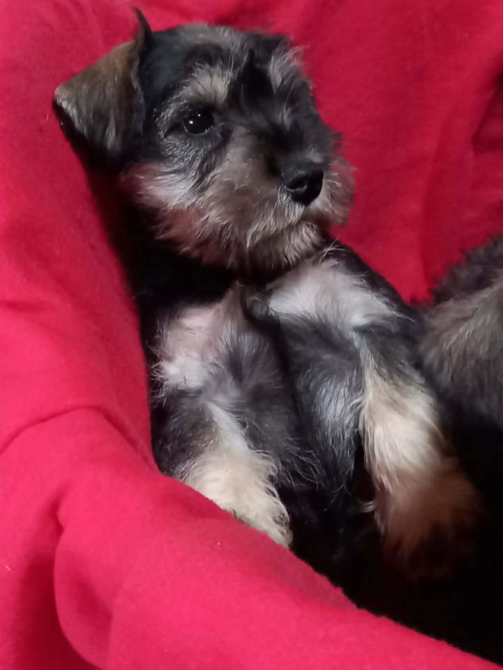 Štenci patuljastog šnaucera, oštenjeni 08.11. 2025. Vakcinisani i očišćeni od parazita. Na raspolaganju je jedna ženkica i tri mužjaka.