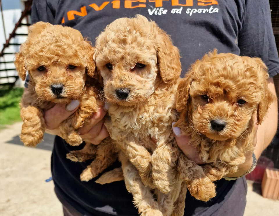 • Toy pudle maleni mečići spremni za preuzimanje. Predivnih okruglih glavica, kratke njuske, malog rasta i sitne gradje. Oba roditelja u nasem vlasnistvu. Imamo bebe i u aprikot i u crvenoj boji. Od nas dobijate sve neophodno za dolazak vaseg novog clana u vas dom. Cinije za hranu i vodu, pelenice gde obavljaju nuzdu, hrana za prelazni period, omiljena igrackica malisana. Vase je da ih volite i ovaj oglas nije za nakupce. Samo za ozbiljne ljubitelje zivotinja i predivnih pudli. Moguca je i dostava uz dogovor.