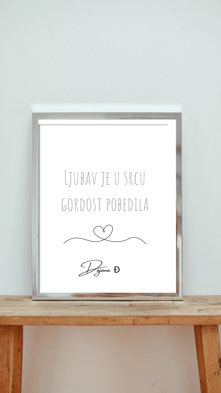 Moje ime je Dajana Djokic. Svoje godine detinjstva posvetila sam pisanju. 2018 godine moje umetnicko delo, pretvorila u jednu koricu knjige, Delfi izdavaštvo, "Od ljubavi do gordosti" Nakon toga se nalazim na Amazon platformi, sa prevedenom zbirkom poezije. "From love to pride" Uz moje srednje grafičko obrazovanje, i master ekonomiste, moje pisanje se pretvorilo takodje i u jedan ram. Ram za Vaš dom, dnevnu sobu, spavaću, kancelarijski prostor. Bilo da želite da obradujete sebi dragu osobu, ili da upotpunite svoj prostor, možete birati ramovi, sa originalnim citatima, i dizajnom. Personalizovano.