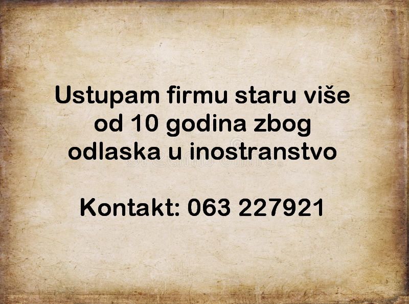 Ustupam firmu staru više od 10 godina zbog odlaska u inostranstvo
